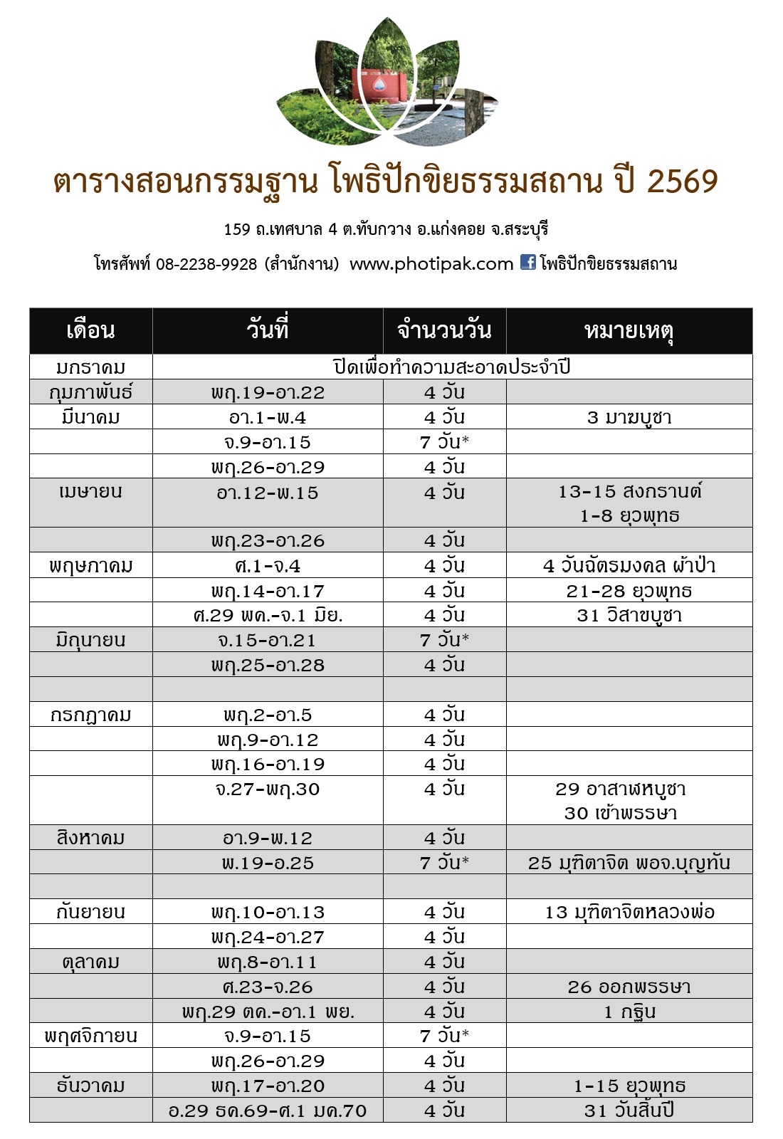 หรือตามกำลังศรัทธา หมายเหตุ โทรแจ้งสมัครเข้าปฏิบัติธรรมที่ 08-2238-9928 (สำนักงาน)